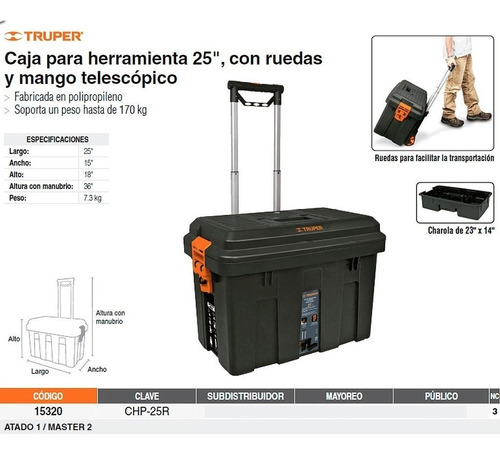 Caja Herramienta Plástica C/ruedas 63 Cms Truper Chp-25r