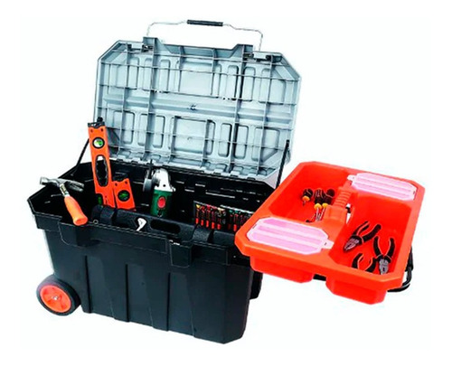 Caja Herramientas 75cm Plast.C/Bandeja Y Ruedas