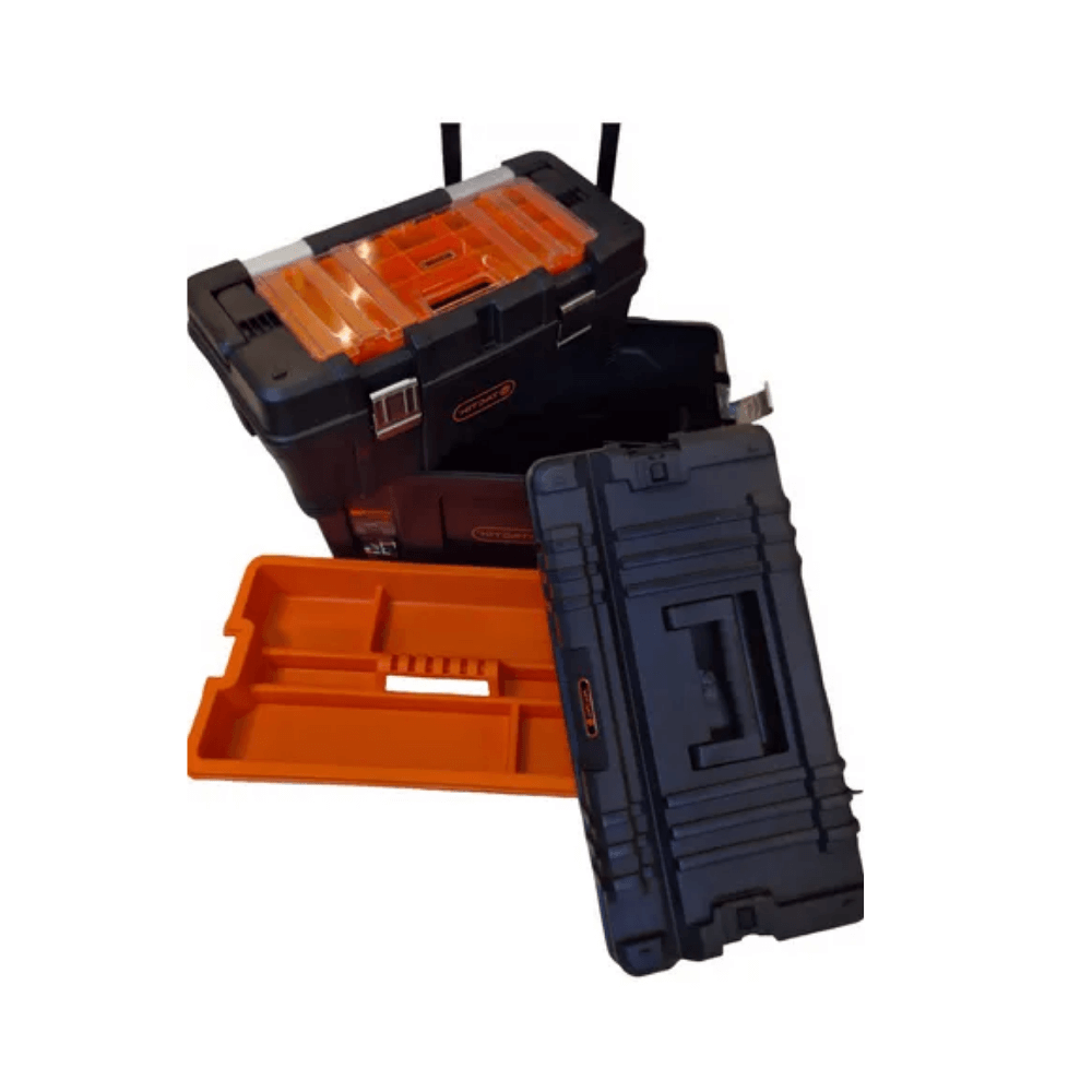 Cuenta con pestillos de acero reforzado, organizador incorporado extraíble en la parte superior, y una estructura pensada para mecánicos, electricistas, técnicos y todo aquel que necesite llevar sus herramientas con seguridad y orden.