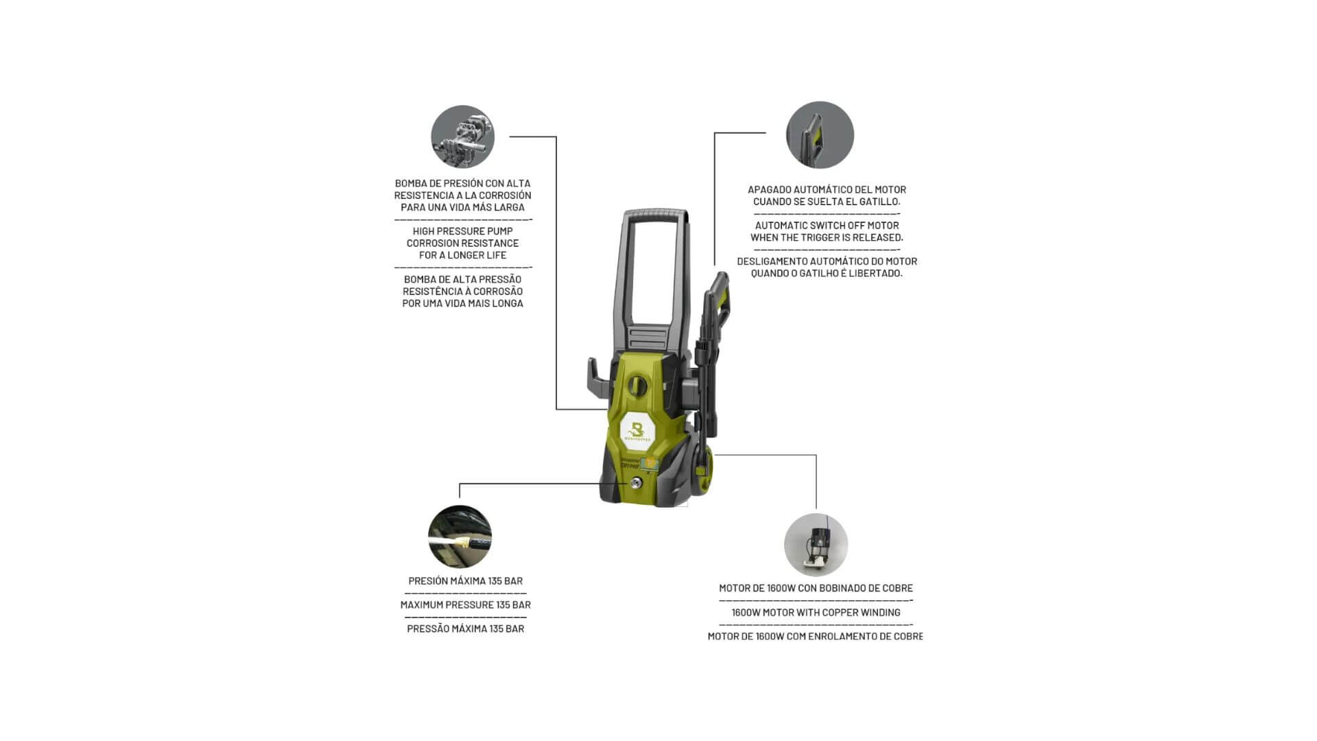 Hidrolavadora Bonhoeffer Alta Presión 135 Bar Max. 1600w Verde 50 60hz